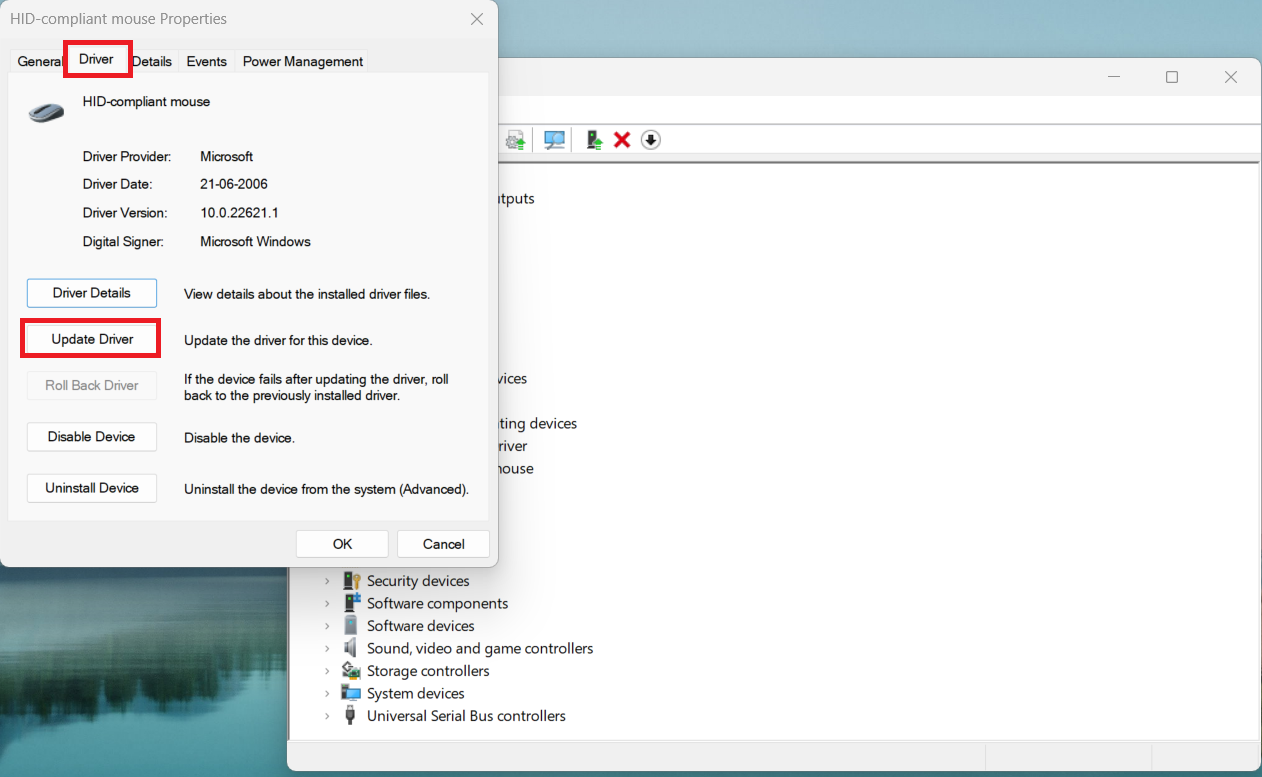 Poprawka 3: Zaktualizuj sterownik myszy