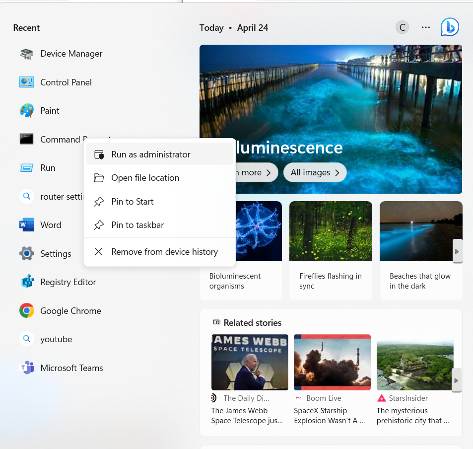 - Kliknij prawym przyciskiem myszyWiersz poleceńi wybierzUruchomićjako administrator.