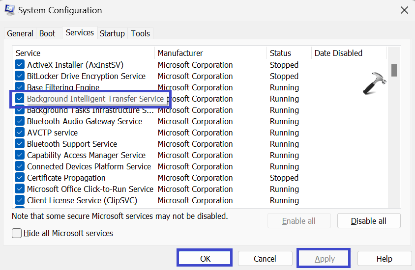 Poprawka 4: Wyłącz usługę inteligentnego transferu w tle