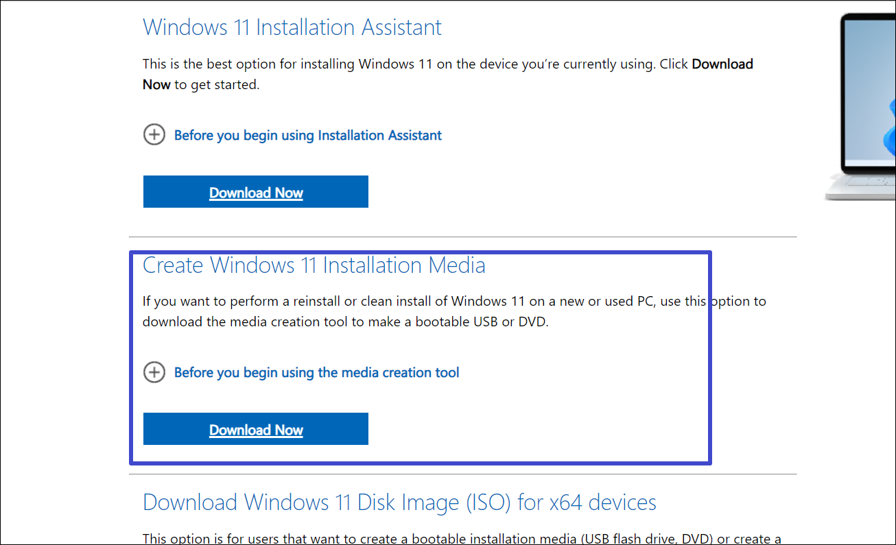 1. Przejdź do oficjalnej witryny firmy Microsoft i pobierz narzędzie Utwórz nośnik instalacyjny systemu Windows dla systemu Windows 11 lub Windows 10 w zależności od wymagań.