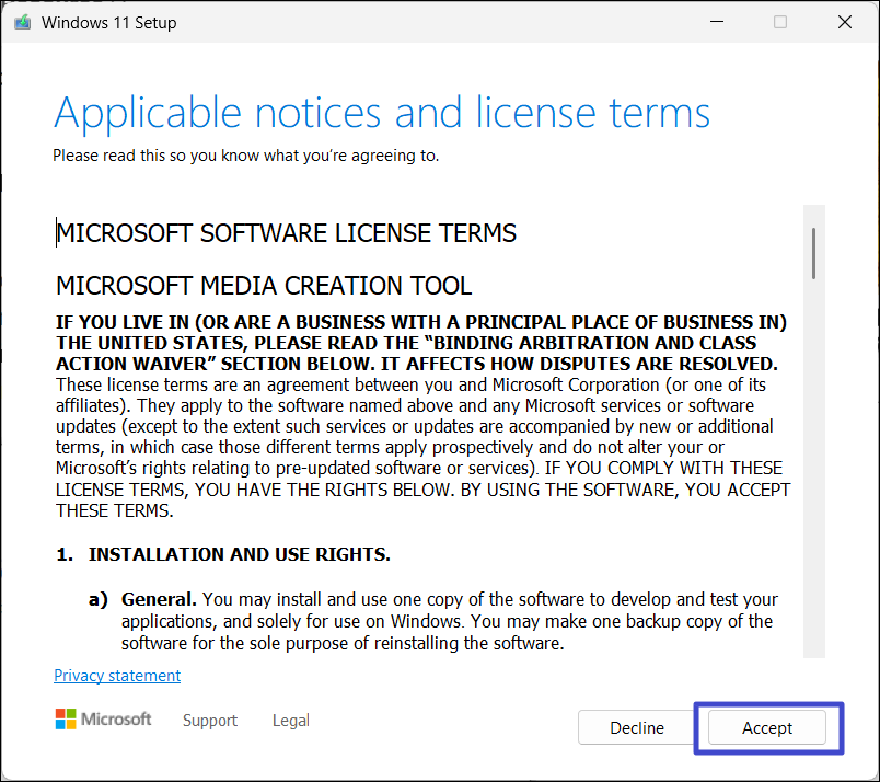 2. Następnie uruchom pobrane narzędzie Media Creation, aby utworzyć rozruchowy dysk USB lub plik ISO.