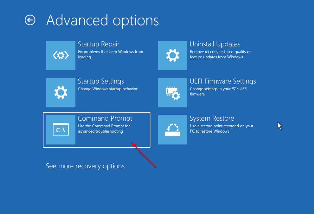 Wiersz poleceń”“.5. Na ekranie Opcje zaawansowane wybierz „