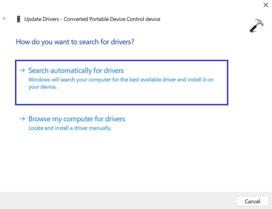 Wybierz opcję „Wyszukaj automatycznie sterowniki”. System pobierze najnowszą wersję sterownika.