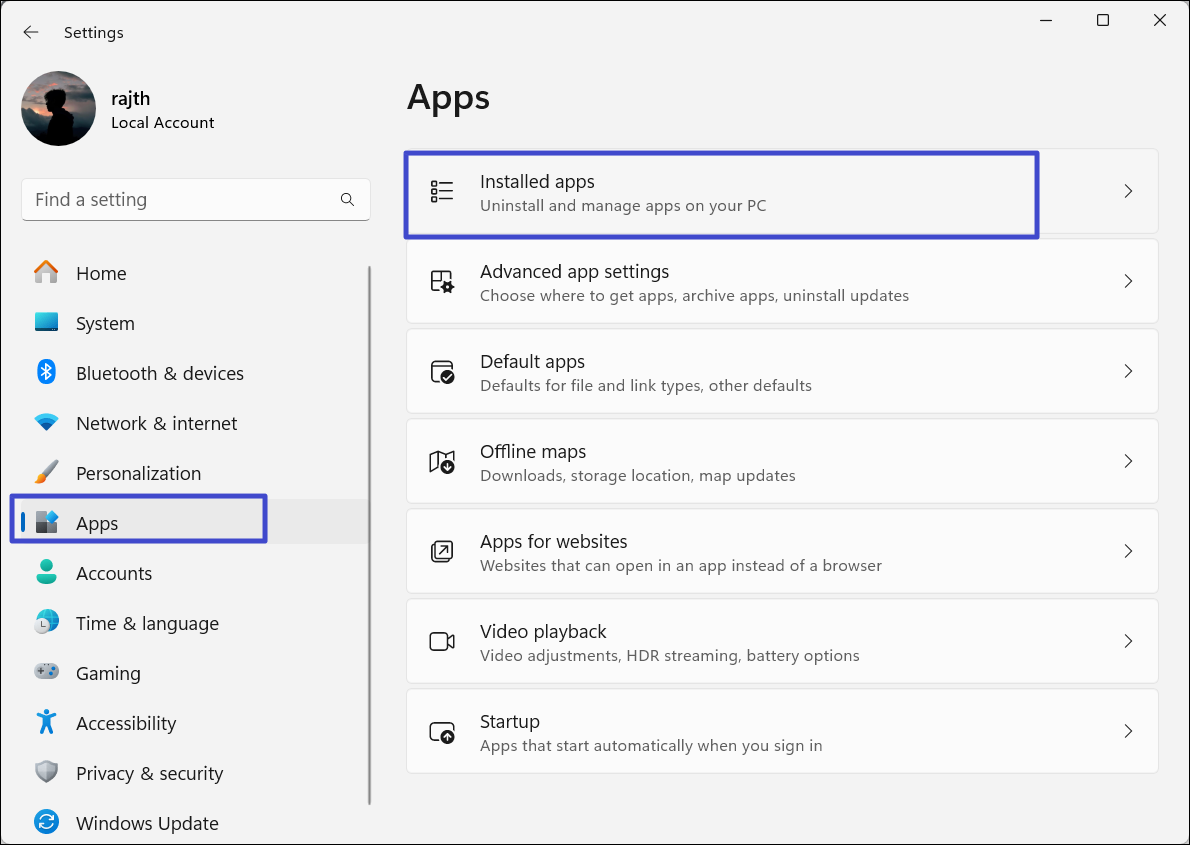 2. Przejdź do „Aplikacje” > “Zainstalowane aplikacje“.