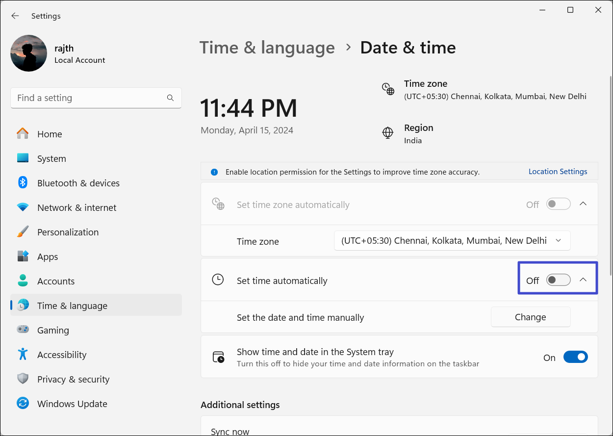 1. Otwórz aplikację Ustawienia systemu Windows i przejdź doCzas i język > Data i godzina.