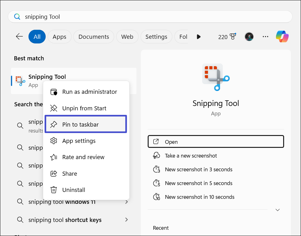 1. KliknijStartmenu i wyszukaj „Narzędzie do wycinania“.