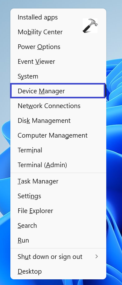 1. Naciśnij klawisz Windows + X. Wybierz „Menedżer urządzeń”.
