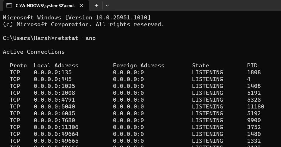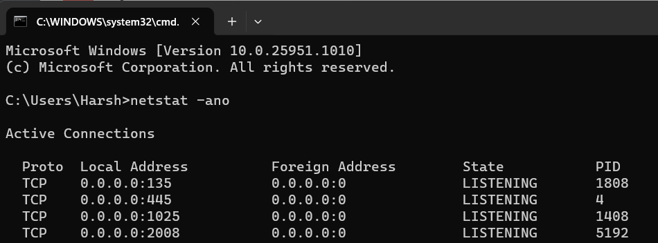 2.wWiersz poleceńskopiuj i wklej w nim polecenie netstat -ano i naciśnijWchodzić.