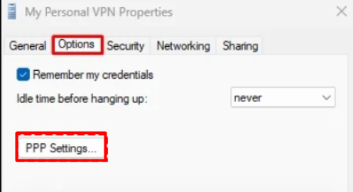6.KliknijUstawienia PPP…przycisk, sprawdźWłącz rozszerzenia LCPopcję i kliknijOK.