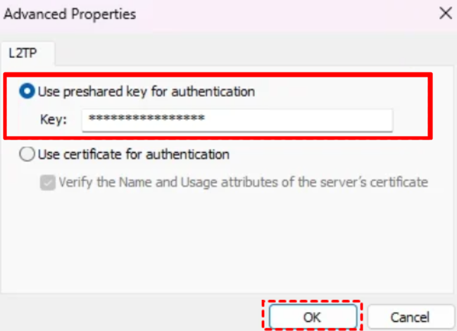 6.Na koniec zaznaczUżyj klucza wstępnego do uwierzytelnieniapole wyboru i kliknijOKprzycisk.
