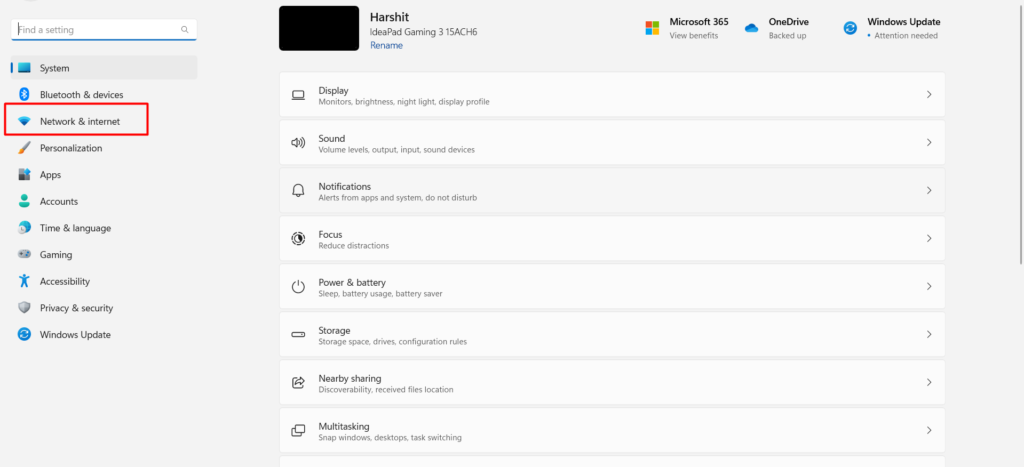 1.Użyj Windows + I, aby otworzyćProgram ustawieńi od lewej strony wybierzSieć i Internet.