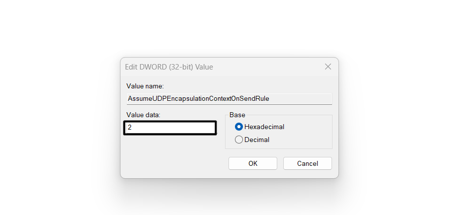 Jeśli nadal nie możesz połączyć się z siecią VPN i ciągle pojawia się ten sam błąd, musisz to rozważyćwprowadzanie zmian w programie Edytor rejestru. Krótko mówiąc, powinieneś utworzyć klucz AssumeUDPEncapsulationContextOnSendRule i ustawić jego wartość na2aby włączyć go na komputerze. Sugerujemy wykonanie poniższych kroków, aby wiedzieć, co dokładnie musisz zrobić: