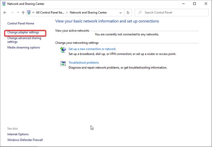 2.wSieć i Internetokno, wybierzCentrum sieci i udostępnianiaruszyć do przodu.