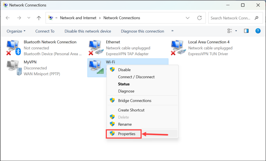 3.WybierzZmień ustawienia adapteraopcję z lewej strony i kliknij prawym przyciskiem myszy sieć VPN.