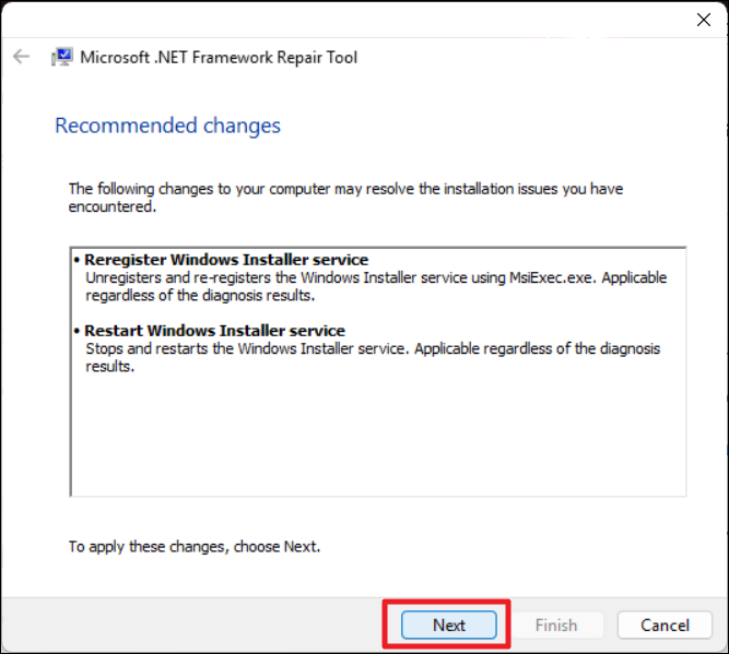 4. Gdy narzędzie wyświetli zalecane zmiany, kliknij „Następny”, aby je zastosować.
