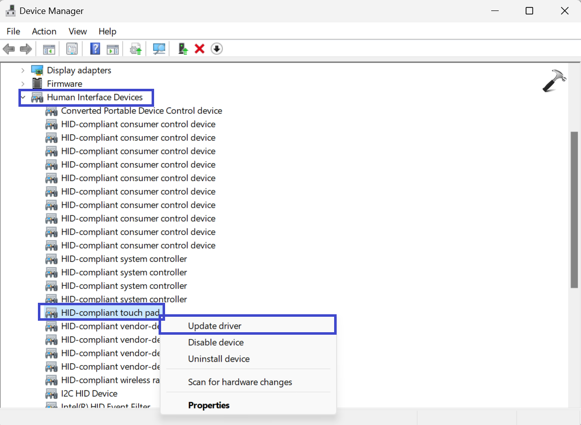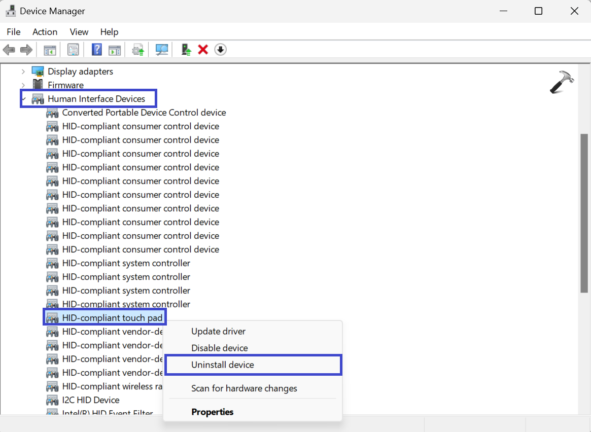 Ponowne włączenie sterownika touchpada może przywrócić brakujące ustawienia touchpada i odzyskać kontrolę nad funkcjonalnością touchpada w systemie Windows 11.