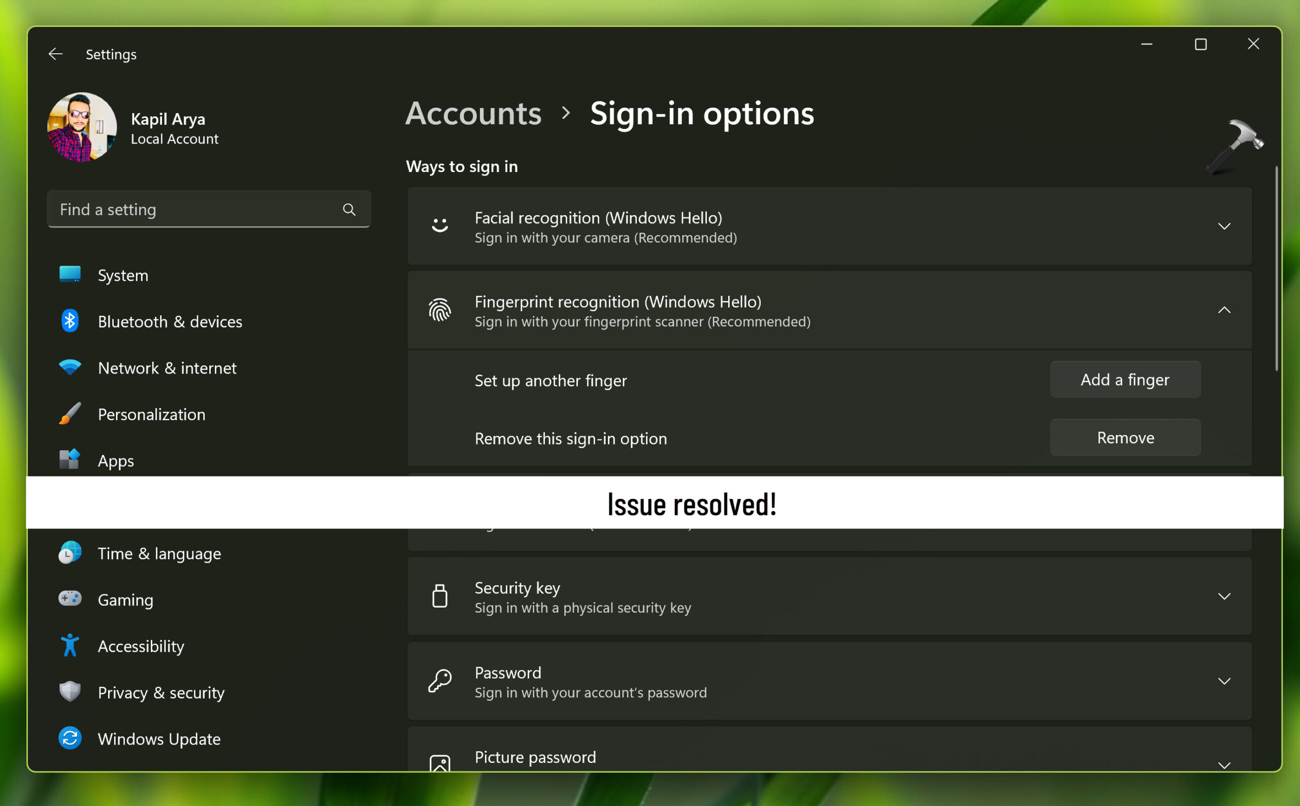 Więcej czytania:Poprawka: logowanie odciskiem palca nie działa w systemie Windows 11