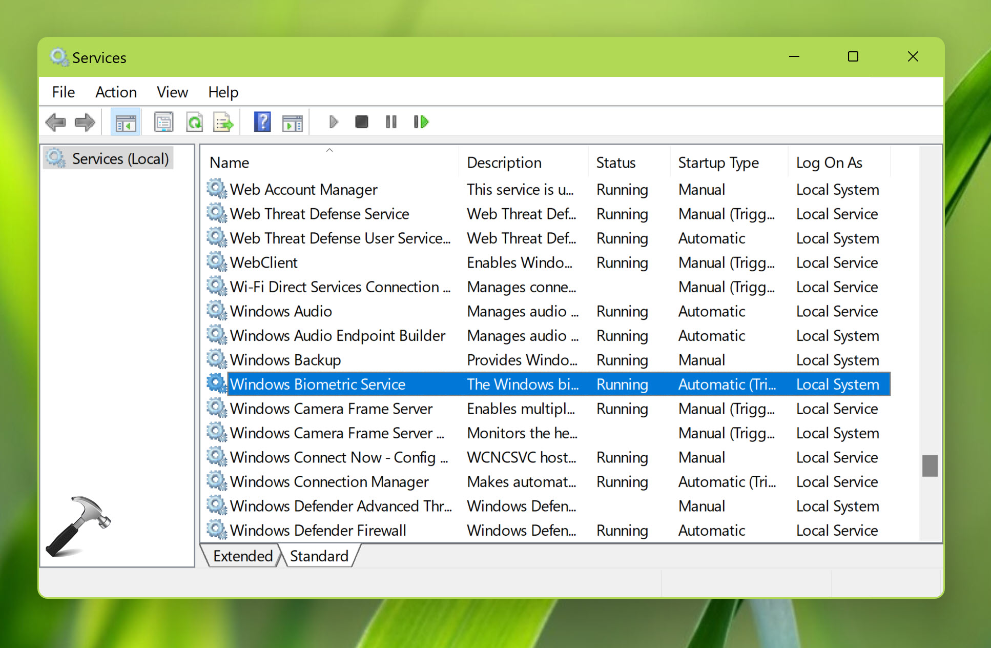 2.W oknie Usługi przewiń w dół i poszukajUsługa biometryczna systemu Windows.
