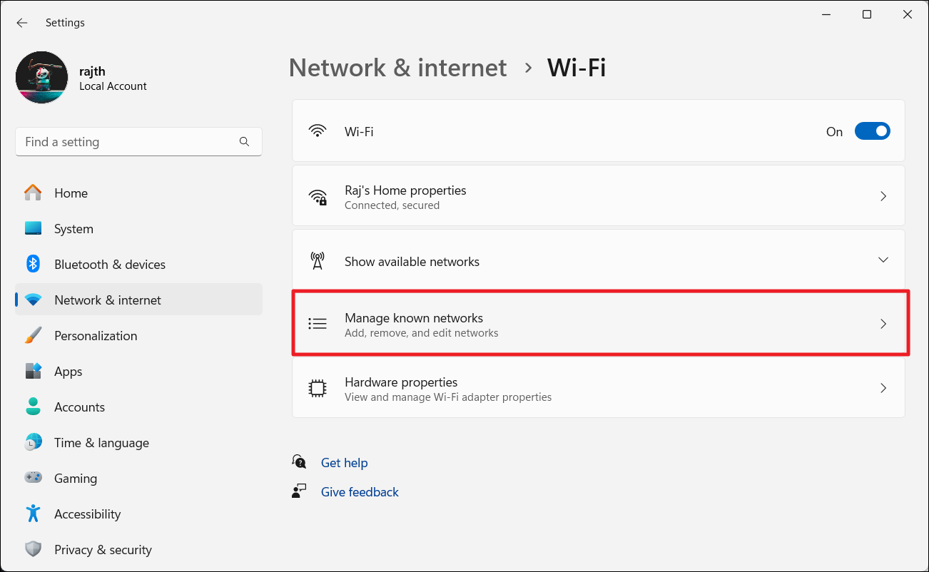 3. Następnie wybierz „Zarządzaj znanymi sieciami“.