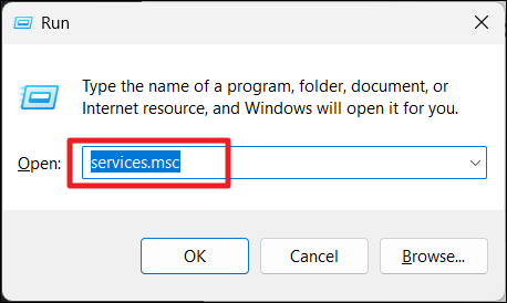1. NaciśnijOkna+R, a następnie wpisz „Usługi.msc”i naciśnij Enter, aby otworzyć Menedżera usług Windows.