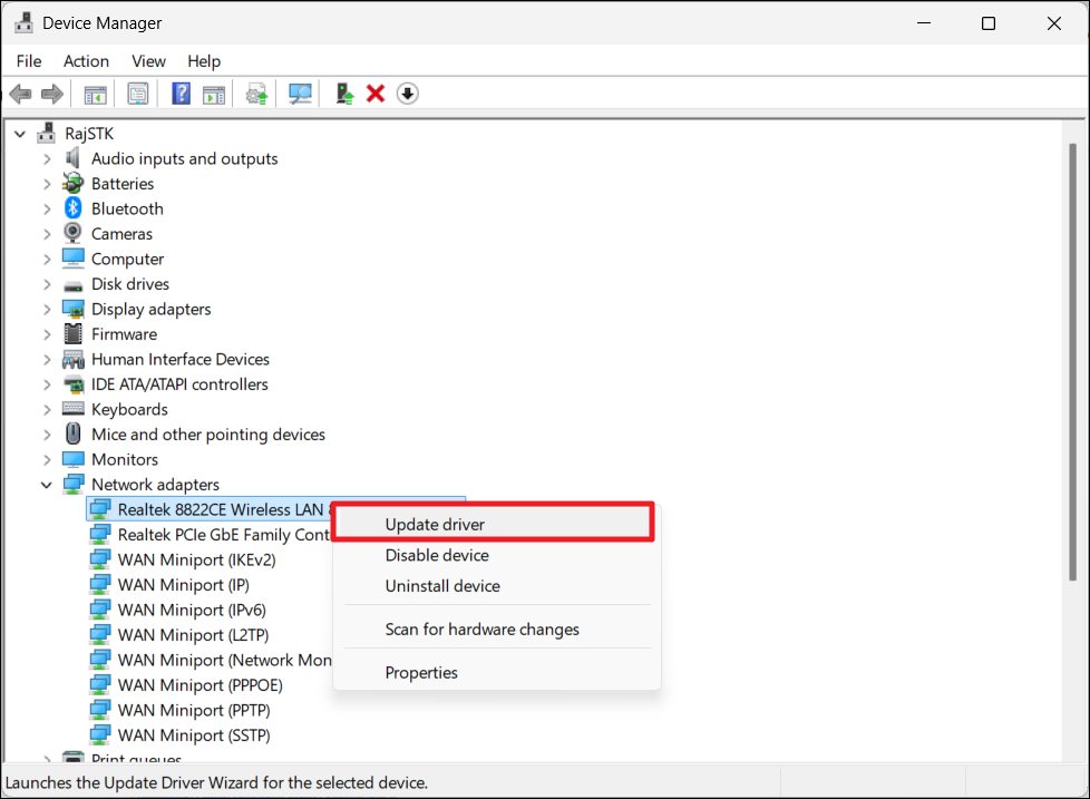 Aktualizacja lub ponowna instalacja wadliwych sterowników sieciowych może rozwiązać większość problemów związanych z Wi-Fi. Spróbujmy tego.