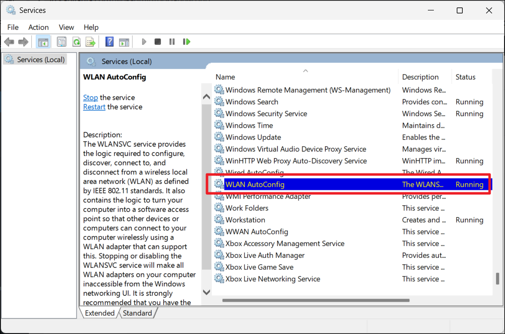 2. Znajdź „Usługa automatycznej konfiguracji sieci WLAN”i kliknij go dwukrotnie.