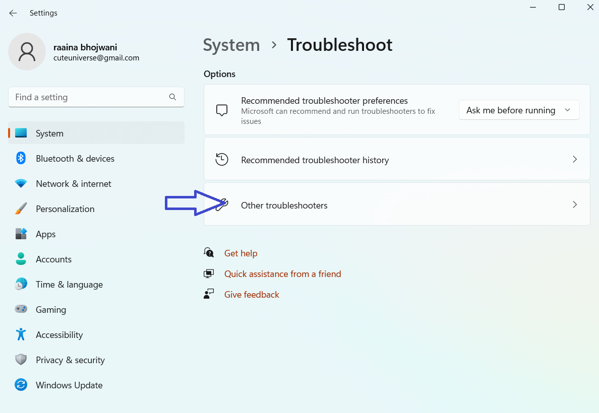 3. Kliknij „Inne narzędzia do rozwiązywania problemów”.