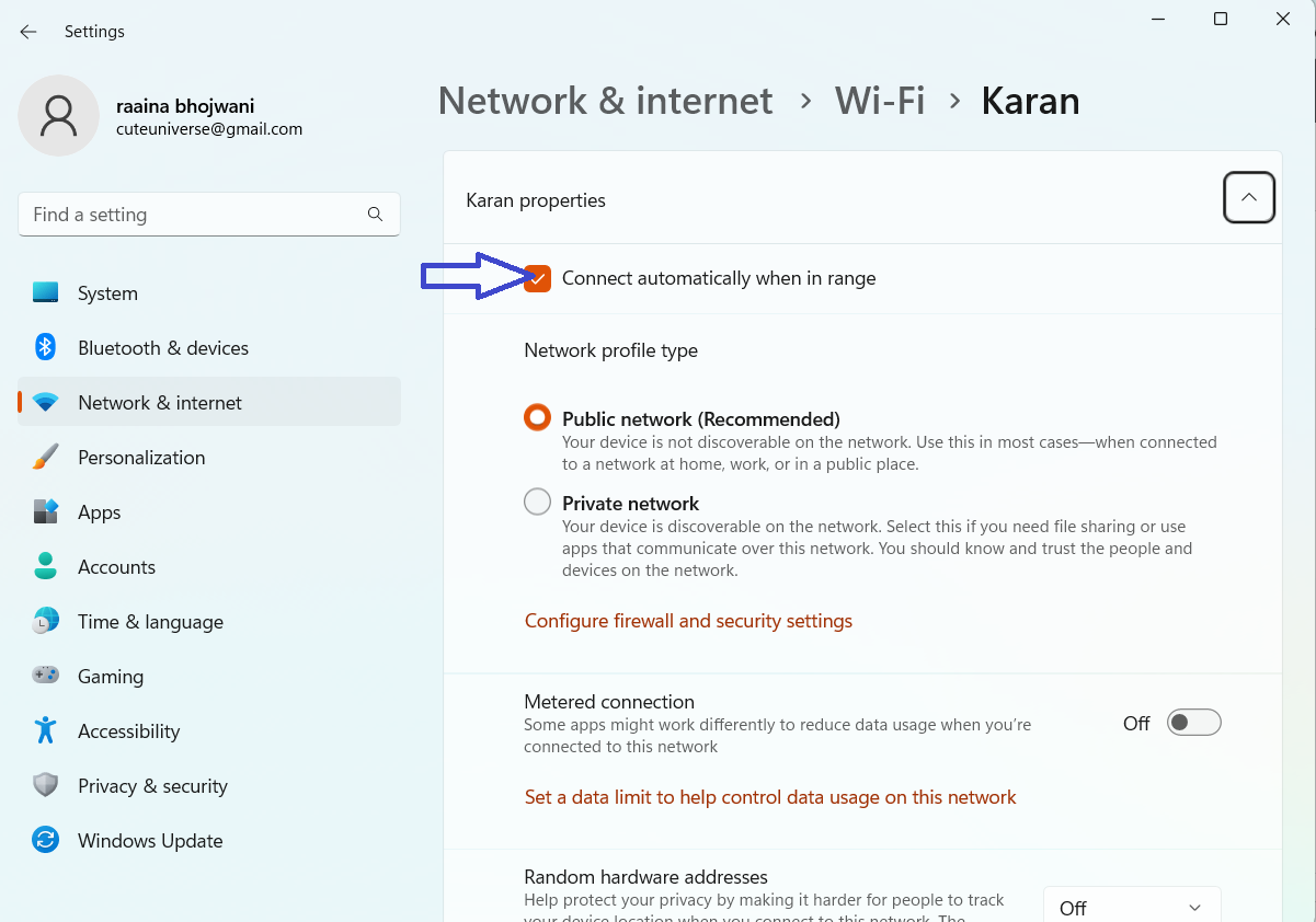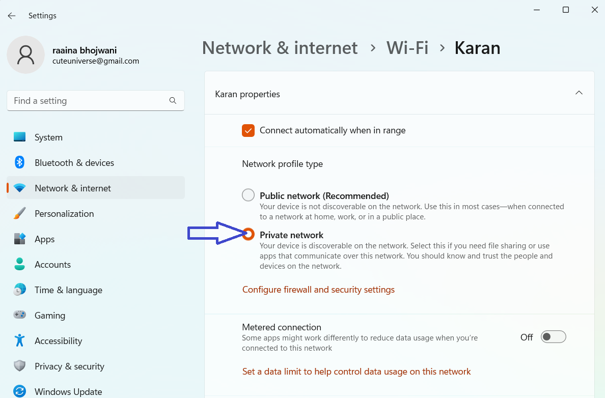 Poprawka 2: Ustaw sieć Wi-Fi jako prywatną, aby naprawić Wi-Fi, które ciągle się rozłącza w systemie Windows 11.