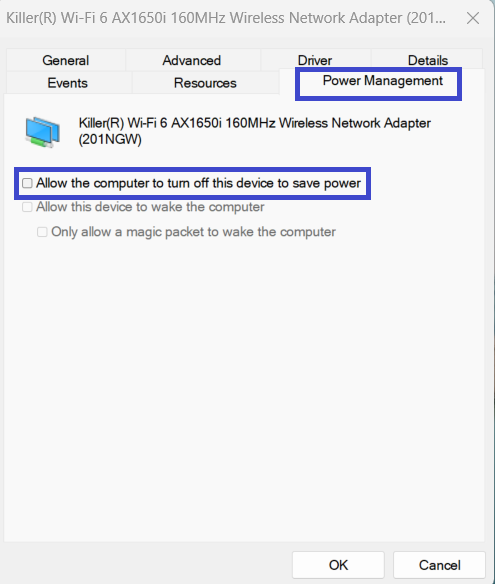 3. Wybierz zakładkę „Zarządzanie energią” i usuń zaznaczenie pola wyboru „Zezwalaj komputerowi na wyłączanie tego urządzenia w celu oszczędzania energii”.