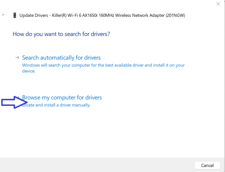 3. Kliknij „Przeglądaj mój komputer w poszukiwaniu sterowników”.