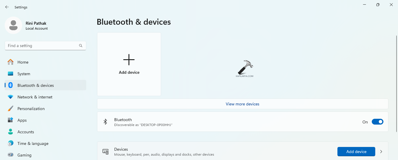 Krok 3-Teraz wybierz Dodaj urządzenie w pobliżu Urządzenia. Następnie przejdź do opcji Więcej urządzeń i ustawień drukarki