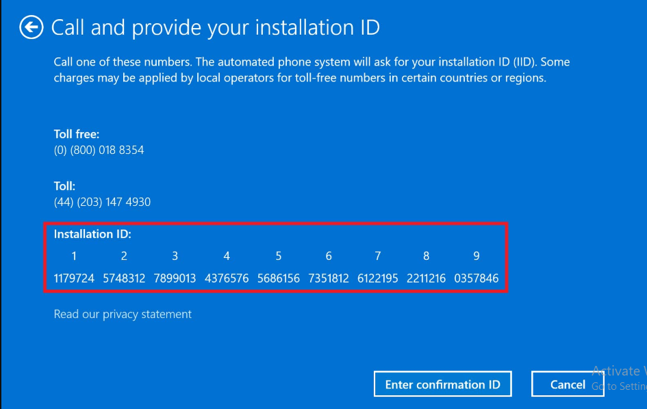 Aktywacja systemu Windows przez telefon pomoże również w rozwiązaniu problemu aktywacji systemu Windows. Ponadto pomocne może być również skontaktowanie się z pomocą techniczną firmy Microsoft i poinformowanie o problemie. Agent pomocy technicznej systemu Windows w zamian zweryfikuje klucz produktu Windows i poda identyfikator, który pomoże w aktywacji systemu Windows na nowym komputerze.