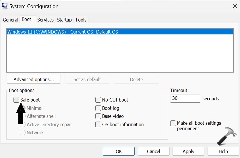 6. Teraz przejdź doUruchomićopcję i kliknij pole obokBezpieczny rozruch. Naciśnij OK i Zastosuj.