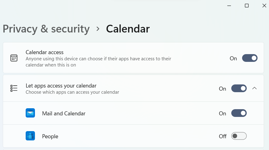 3 – Wróć do sekcji Prywatność i bezpieczeństwo i wybierzKalendarztym razem. W menu, które zostanie otwarte, upewnij się, że włączono dostęp do Kalendarza oraz opcję Poczta i Kalendarz.