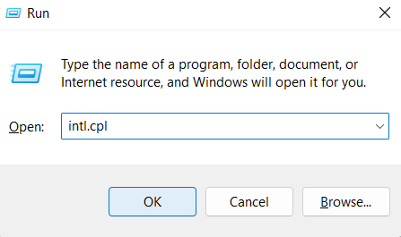 1 – NaciśnijWygraj + Rklawisze, aby otworzyć Uruchom. Typintl.cpltam i kliknijOK.