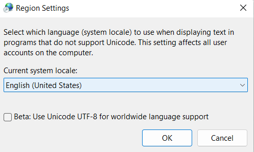 3 – Sprawdź, czyBieżące ustawienia regionalne systemujest poprawne. Jeśli nie, wybierz prawidłowe ustawienia regionalne z menu rozwijanego. Następnie kliknijOKaby zapisać zmiany.