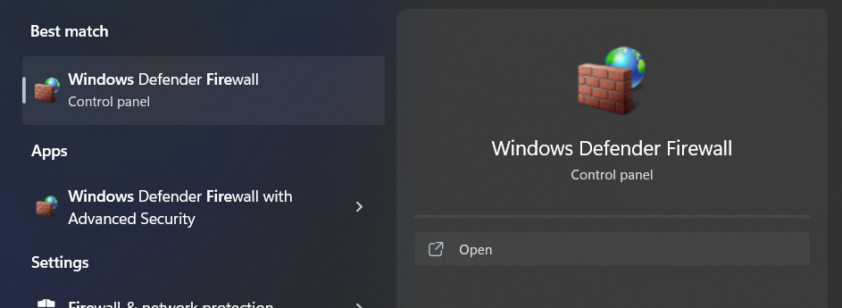 1 – Wyszukaj Zaporę systemu Windows Defender w menu Start i otwórz aplikację.