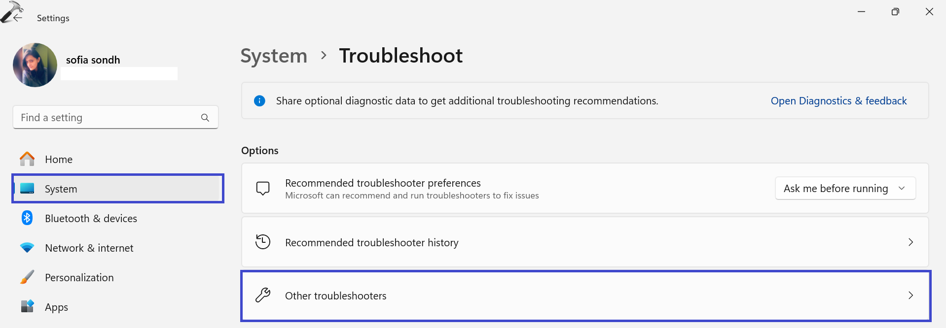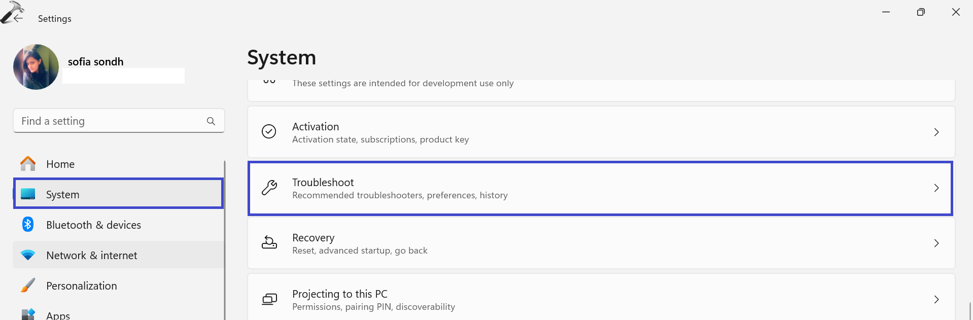 1. Przejdź do „Ustawienia => System => Rozwiązywanie problemów”.