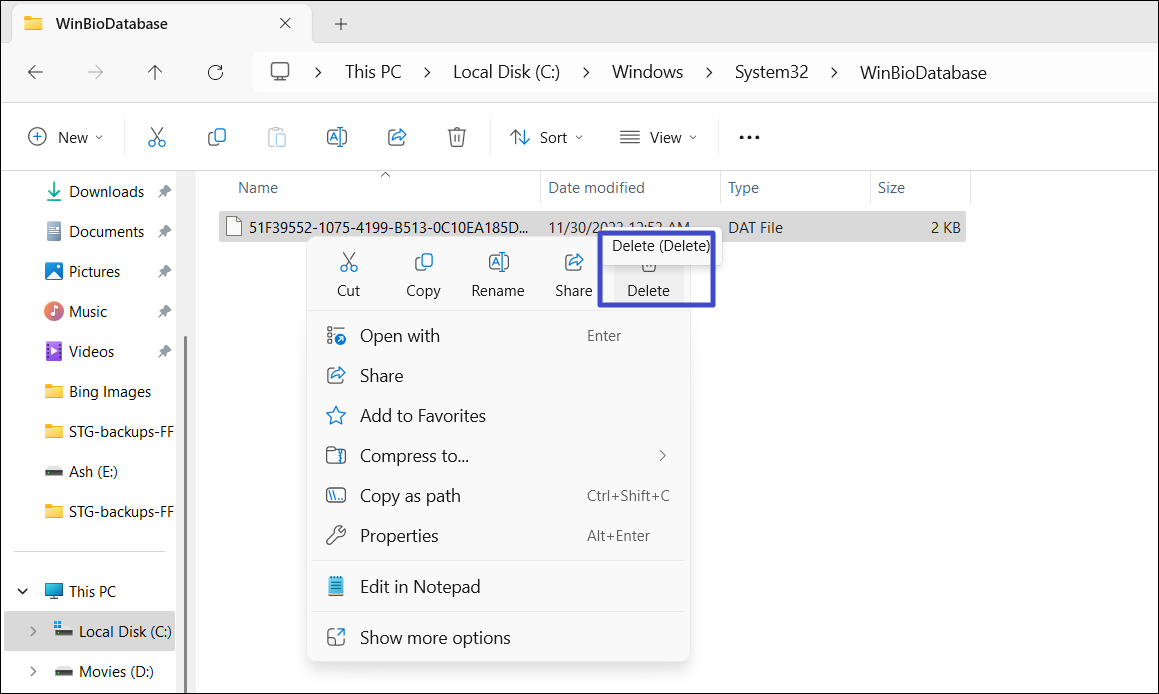 C:WindowsSystem32WinBioDatabase