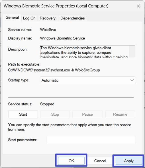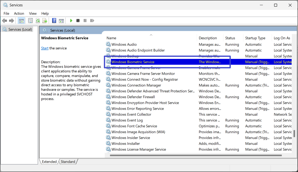 Rozwiązanie 3: Włącz usługi biometryczne systemu Windows