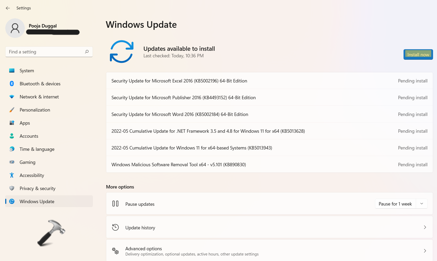 2.Jeśli jest dostępny, kliknij przyciskZainstaluj terazprzycisk.