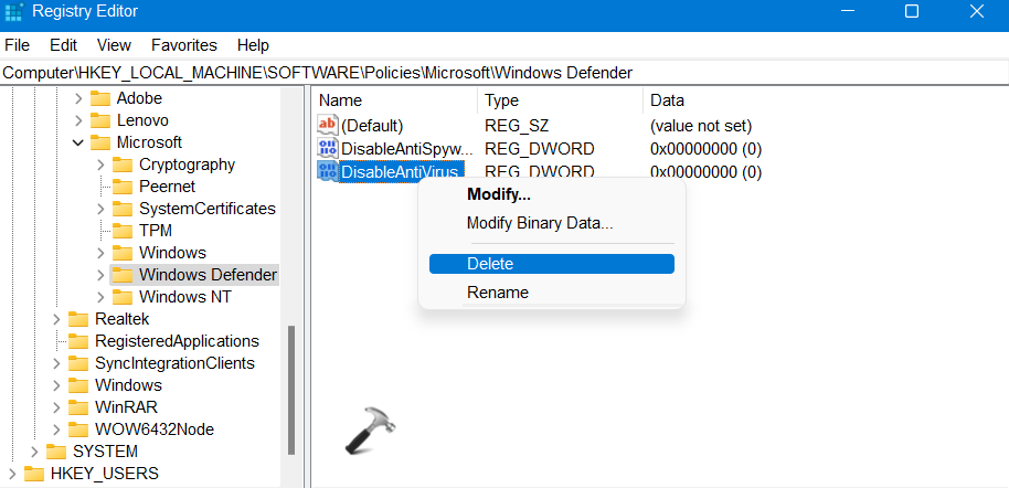 HKEY_LOCAL_MACHINESOFTWAREPoliciesMicrosoftWindows Defender
