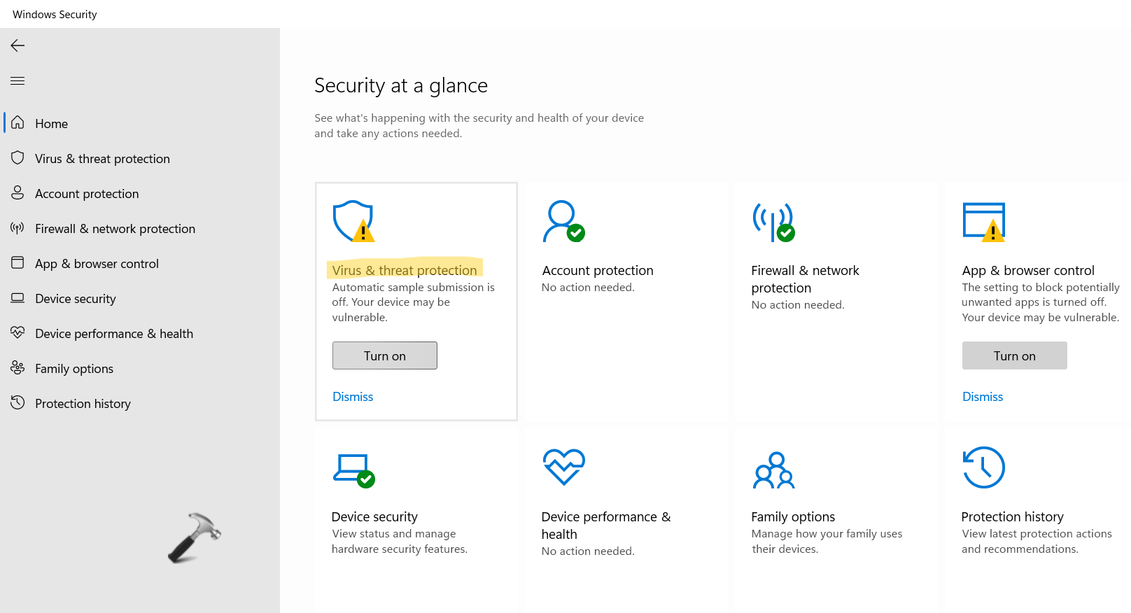 6.Teraz otwórzBezpieczeństwo systemu Windowsi poszukajOchrona przed wirusami i zagrożeniami. Teraz kliknijWłączyć cośaby włączyć usługę.