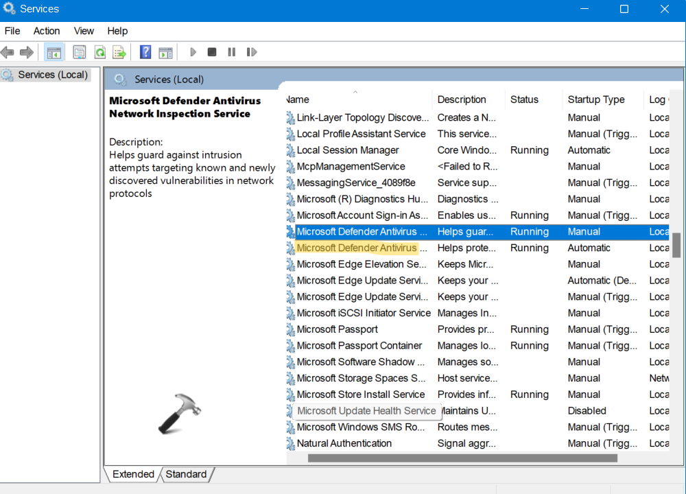 3.Potem poszukajUsługa inspekcji sieci programu antywirusowego Microsoft DefenderIUsługa antywirusowa Microsoft Defenderi sprawdź, czy ich status toDziałanie.