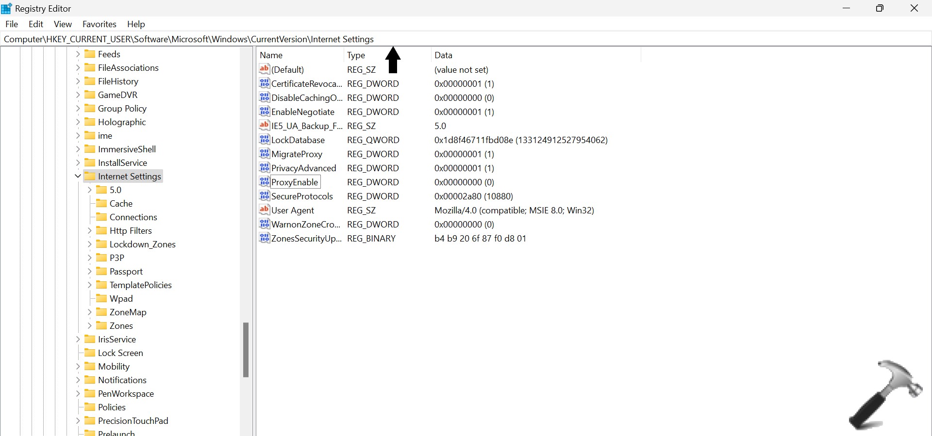 HKEY_CURRENT_USERSoftwareMicrosoftWindowsCurrentVersionInternet Settings