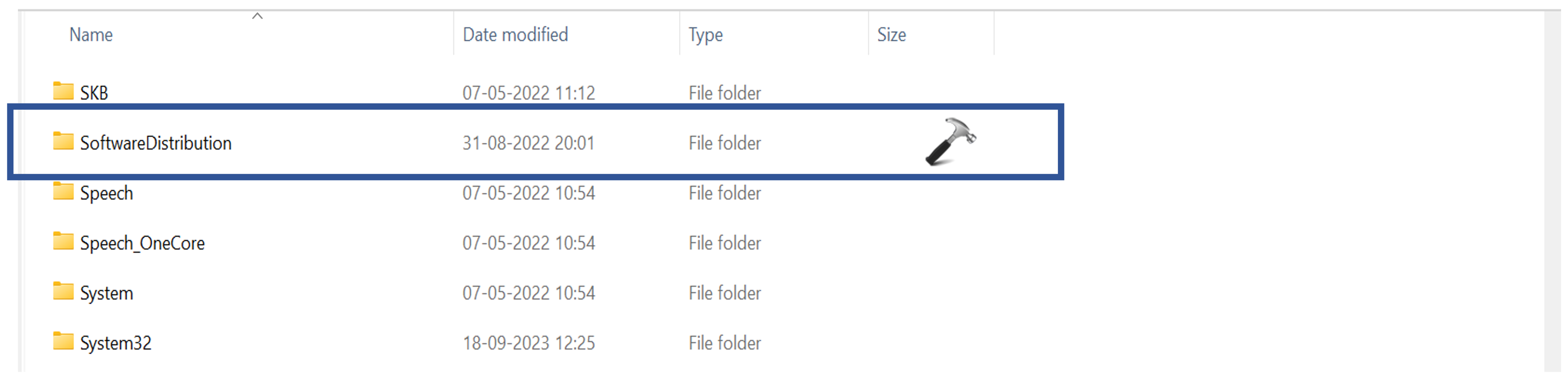 6. Teraz wyszukaj „Dystrybucja oprogramowania” i usuń go.