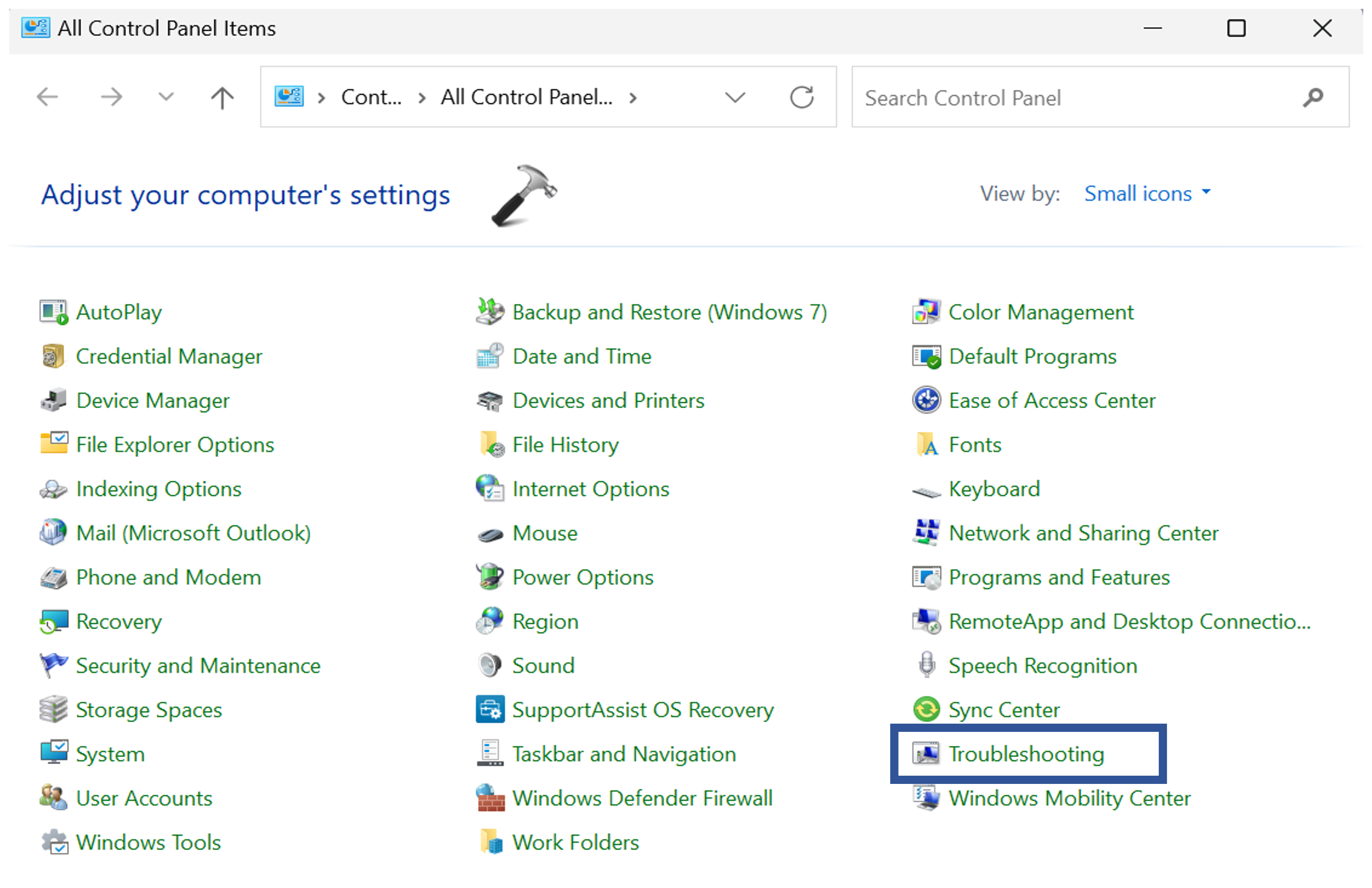 1. Otwórz Panel sterowania i kliknij „Rozwiązywanie problemów“.