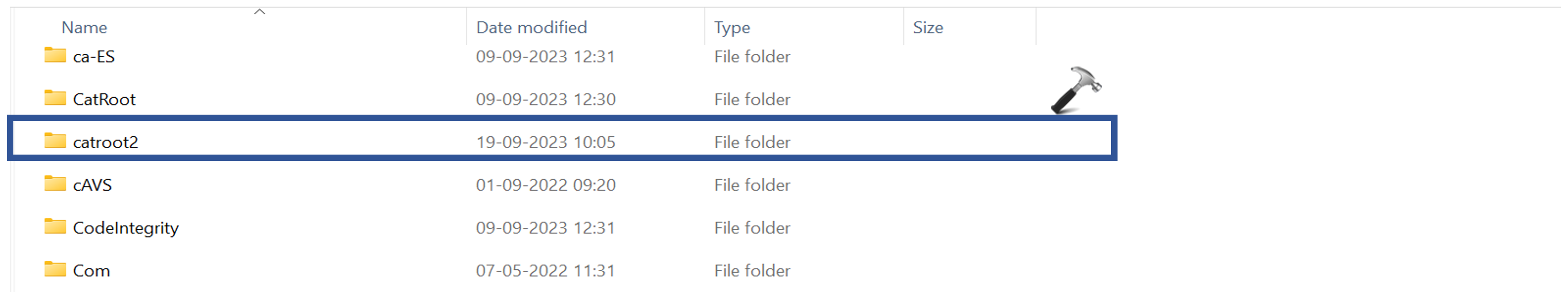 3. Teraz w podobny sposób przejdź do „C:WindowsSystemcatroot2". Wybierz pliki i foldery. Naciśnij "Usuwać“.