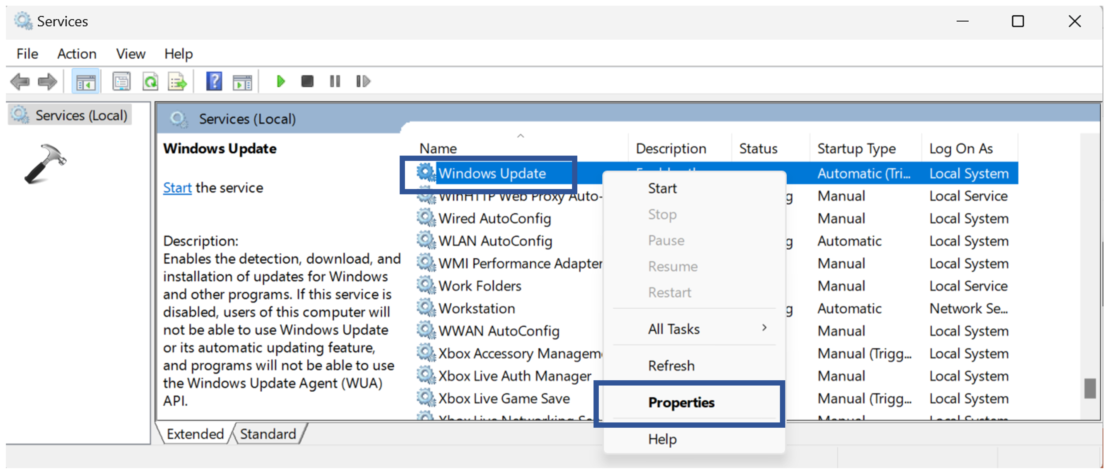 3. Teraz kliknij prawym przyciskiem myszy „Usługa Windows Update” i wybierz „Właściwości“.