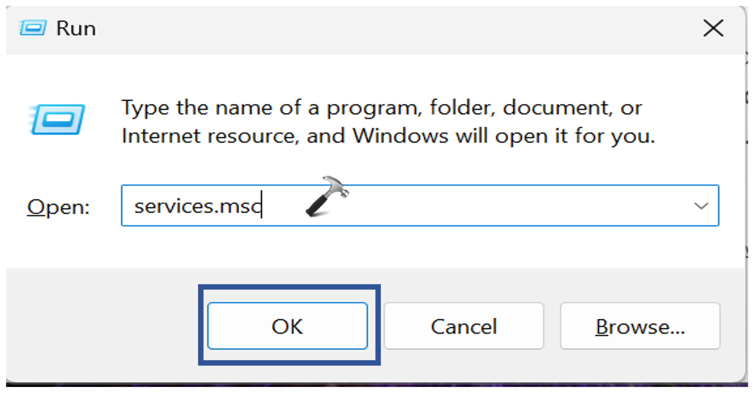 1. Naciśnij klawisz Windows + R. Wpisz „usługi.msc“.